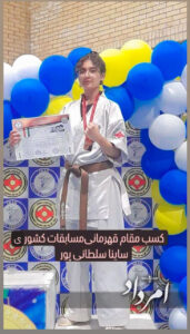 Saina has been practicing the Honkyokushin style for nearly five years. Her achievements include two second place finishes in previous events, a second place in kata competitions, and a gold medal in karate competitions in Yazd province. Saina, the daughter of Mehri Pourbehmardian and Afshin Soltanipour, is currently an 11th-grade painting student at an art school.