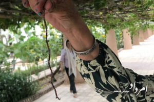 Members of the Gohar Hemmati House released “Tir-o-Bad” bracelets into the wind at Fathabad Garden in Kerman.