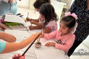 Although called “Movie Night” and primarily designed as a fun gathering for children, the organizers also incorporated an educational element. The evening kicked off at 5 PM with a music workshop introducing various musical instruments, followed by a calligraphy workshop for the children.