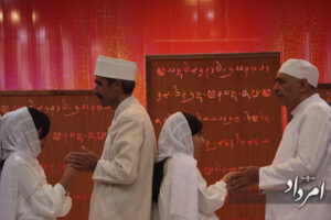 The ceremony continued in three groups of four, accompanied by the Avesta recitation of Mobeds Farhang Falhati, Vishtasb Mobed Shahi, Houman Foruhari, Mehraban Afarin, and Mobedyar Mehrzad Kaviani, who joined the newly initiated navbaste-kushtians. Afterward, Mehrzad Kaviani congratulated the young initiates and welcomed Dr. Behshid Barkhordar, the Zoroastrian representative in the Iranian Parliament.