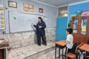 According to the school’s report, on Wednesday, Mehr 23, 1404 (October 15, 2025), a dentist from Yeganegi Dental Clinic visited the school to teach students proper brushing techniques and emphasize the importance of reducing sugary foods.