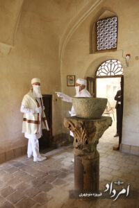 Mobed Dr Mehraban Pouladi explained the process of placing the sacred fire at Khorramshah fire temple. In the days preceding the ceremony, recitations from the Vendidad, Yasna, and Srood are performed for blessings. The installation ceremony is held on two specific days of the Zoroastrian year—Ordibehesht and Azar—as Azar is associated with the Amesha Spenta of fire.