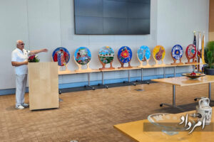 “Art of Yalda & Other Persian Cultural Festivals” reflects the devotion of an Iranian who has lived nearly fifty years abroad. A physician and artist, Babaknia has spent a decade working with glass, producing over 500 pieces that narrate the history and culture of his homeland. Speaking of his connection to Iran, he said: “You can take me from Iran, but you cannot take Iran from me.”